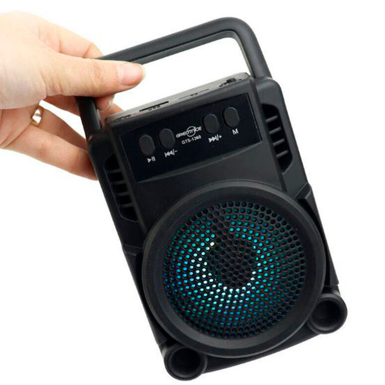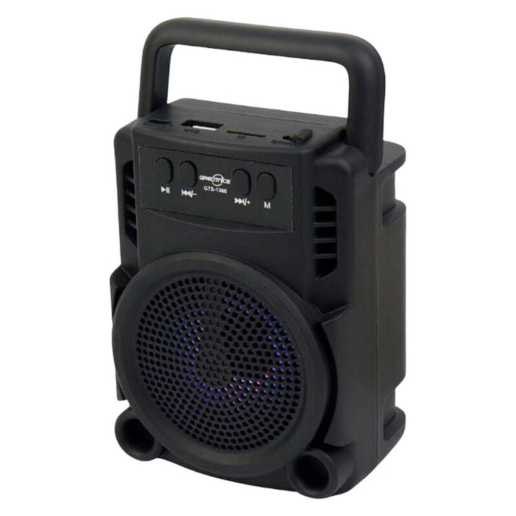 اسپیکر بلوتوثی قابل حمل گریت نایس مدل GTS-1360 اسپیکر پرتابل GTS-1360 را می توان به شکل ایستاده به کار برد و علاوه بر بلوتوث، با کارت حافظه، فلش مموری سازگاری دارد و همچنین و جود یک ساب 3 اینچی باعث شده است تا بتوانید ازقدرت صدای شگفت انگیزبهره ببرید.
